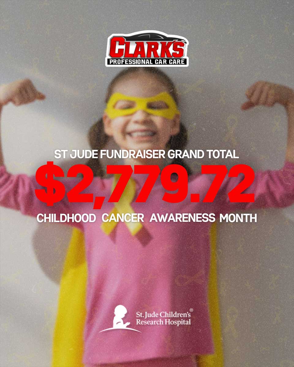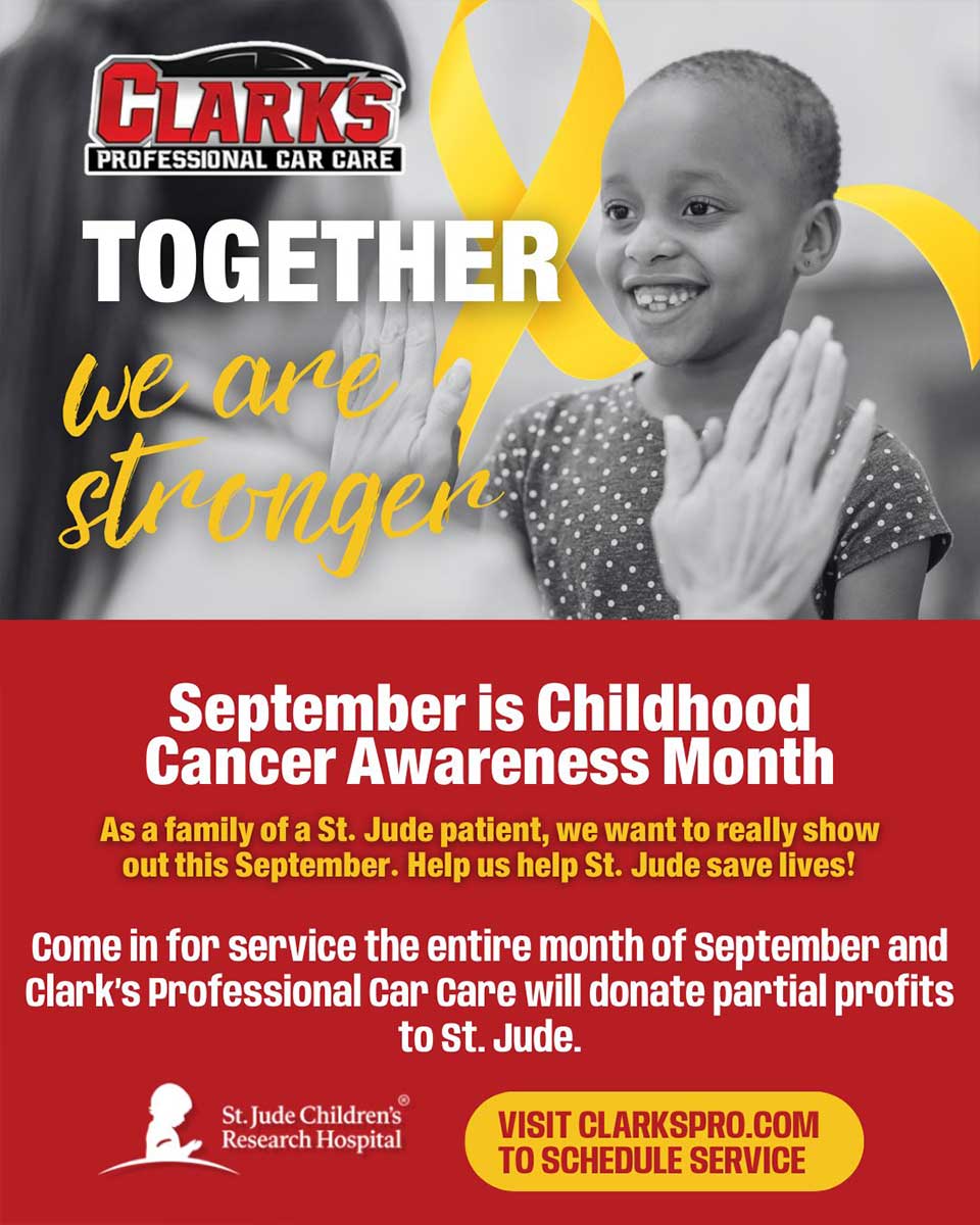 All month long, Clark’s Professional Car Care will donate a portion of its profits to St. Jude during Childhood Cancer Awareness Month.